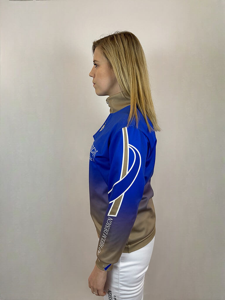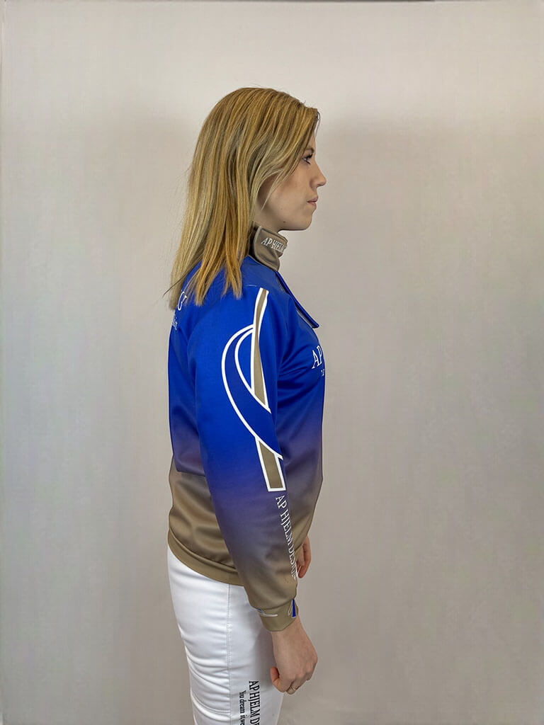 Ce polo est entièrement personnalisable selon vos envies, pour une harmonie parfaite avec votre tenue et un look professionnel. Idéal pour les femmes qui souhaitent allier protection et style au trot. Logos, noms et éléments graphiques sont inclus dans le prix, pour un polo unique et personnalisé.