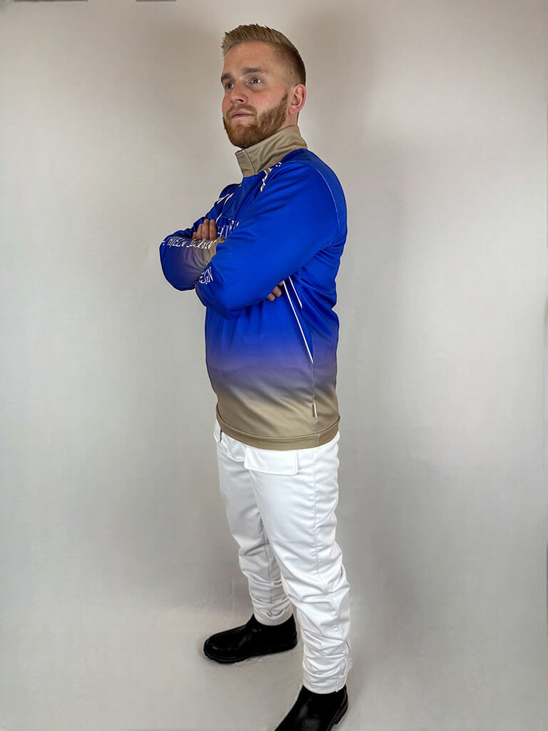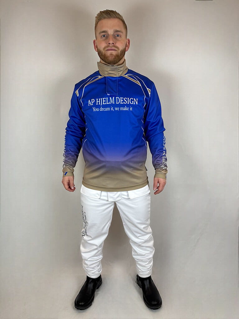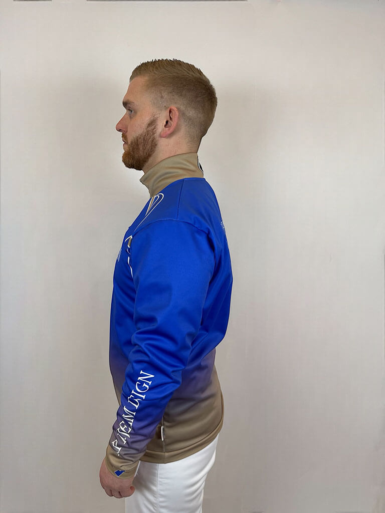 Chemise de pilote softshell pour homme – un pull fonctionnel et élégant conçu pour les jockeys de trot. Un demi-zip avec fermeture Velcro offre une protection supplémentaire contre le vent et les intempéries. Fabriquée dans un tissu coupe-vent, imperméable et respirant. Personnalisable selon vos envies pour un look professionnel. Logos, noms et éléments graphiques inclus dans le prix.