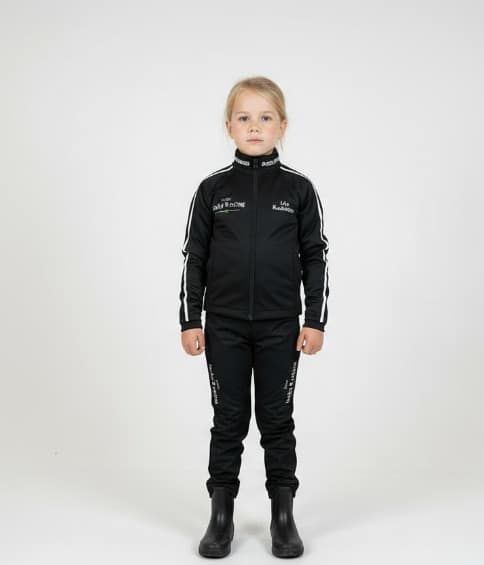 Ensemble d’écurie pour enfants signé AP Hjelm Design, conçu pour les jeunes meneurs et assistants d’écurie qui ont besoin de vêtements résistants à l’activité, au froid et à la saleté.