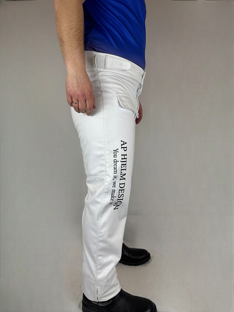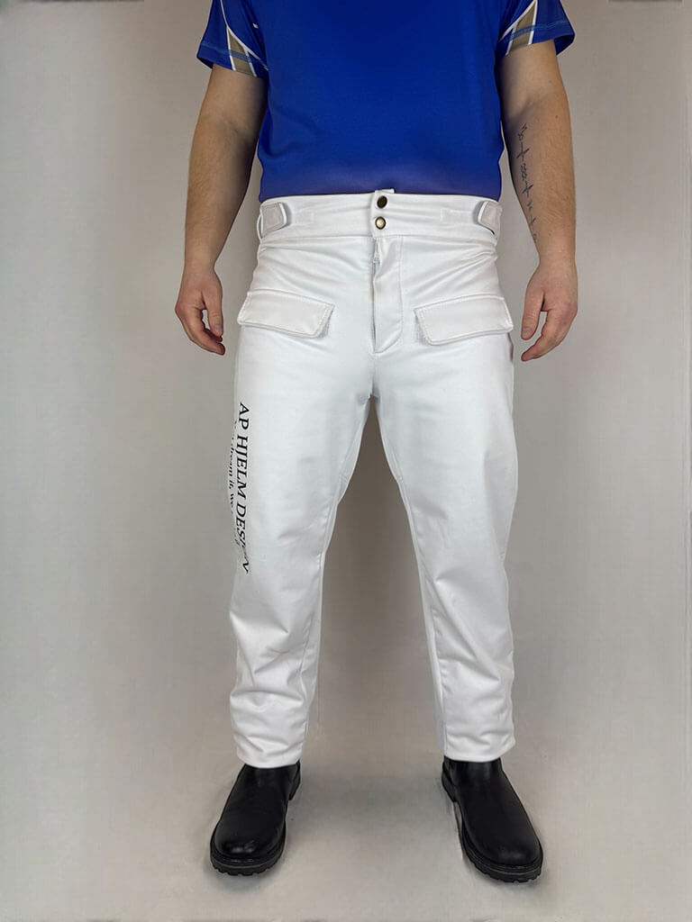 Ce pantalon d’équitation fonctionnel pour homme est à la fois coupe-vent et imperméable, tout en étant respirant, pour un confort optimal à cheval. Il est doté d’une protection au niveau de la fermeture éclair, d’un système de réglage aux chevilles et aux hanches, mais sans bretelles. Une solution souple et pratique pour le trot. Tous les logos, noms et éléments de design sont inclus dans le prix.