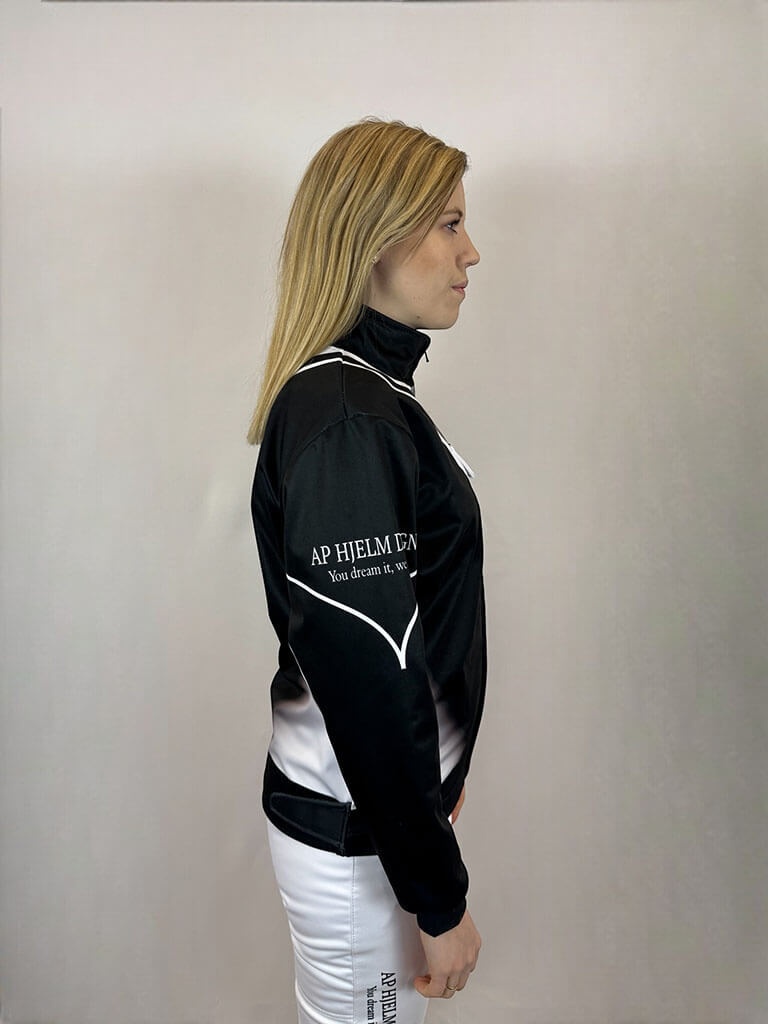 Cette veste polaire pour femme est conçue avec une coupe féminine alliant confort, style et fonctionnalité. Fabriquée en polaire légère, douce et respirante, elle vous garde au chaud sans entraver vos mouvements. Sa coupe près du corps met en valeur votre silhouette, tandis que sa matière légèrement extensible offre souplesse et confort, aussi bien au travail à l’écurie que les jours de compétition.